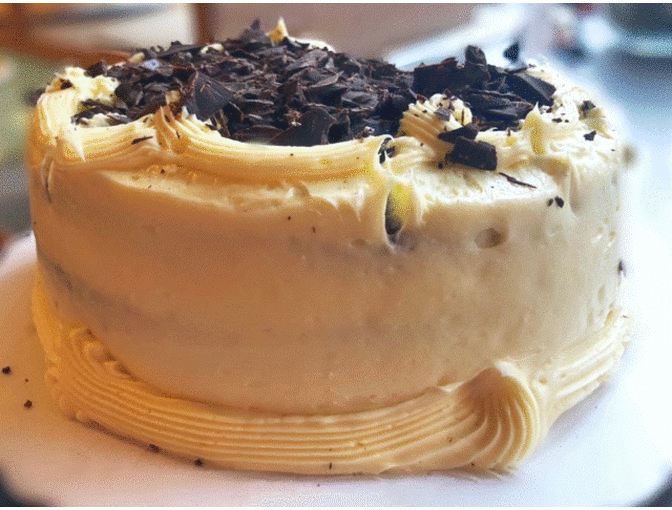 Chocolate White Chocolate Cake - Milk Chocolate cake with white chocolate frosting and chocolate shavings on top.