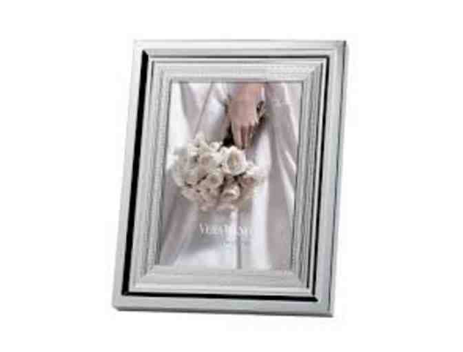 Silver Vera Wang Wedgewood frame copyright (WWRD England ST129ER) for a 5" by 7" photograph. Perfect for an office desk, piano, or mantle. Appropriate wedding gift.