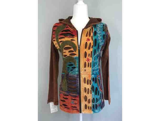 Condition is new, hand-crafted in Nepal, 100% cotton. Measurements: underarm to underarm is 19", zipper length is 22Â", waist (flat across) is 16 ½", bottom (flat across) is 18 ½", shoulder to cuff is 22 1/2".