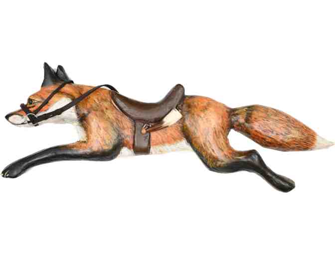 This 3-D Fox is the culmination of many months of love and dedication to humorously capture hints of Fox hunting lore with an equestrian twist. The bit, reins and genuine German black powder horn work together to embody the Middleburg Spirit and its rich hunting tradition!