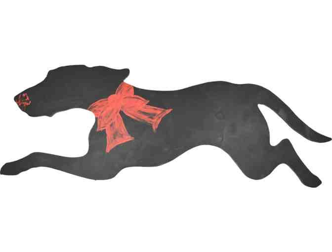 My black hound's namesake is my puppy Poppy. The red Poppy is a symbol of peace and is worn to honor fallen soldiers. My Poppy, with the red bow and red pawprint on the nose, is a salute to military families who have sons and daughters deployed and an expression of hope for better times to come.