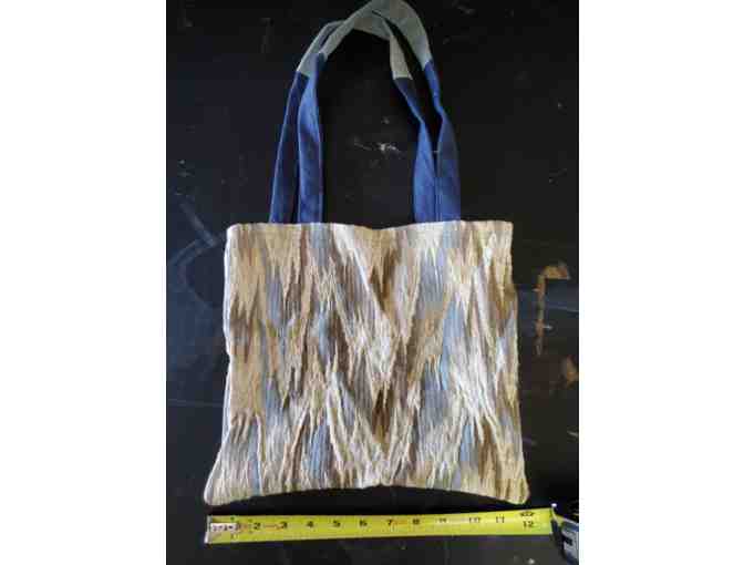 Upcycled Tote Bag - Flame Stitch Pattern - Blue and Natural