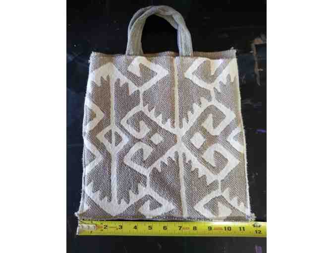 Upcycled Unlined Small Tote - Taupe Inca Pattern