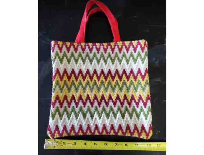 Upcycled Unlined Small Tote - Multi-Colored Vee Pattern
