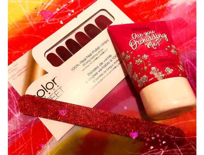 Color Street nails (Rose Goes) and Perfectly Posh hand creme (You're Orchidding Me) combine with a full size nail file. What a great Mothers' Day Combo!
