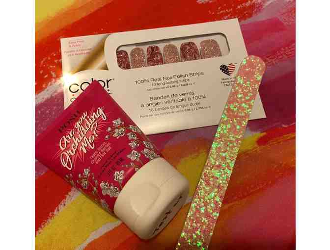 Color Street nails (Feeling Marbelous) and Perfectly Posh hand creme (You're Orchidding Me) combine with a full size nail file. What a great Mothers' Day Combo!