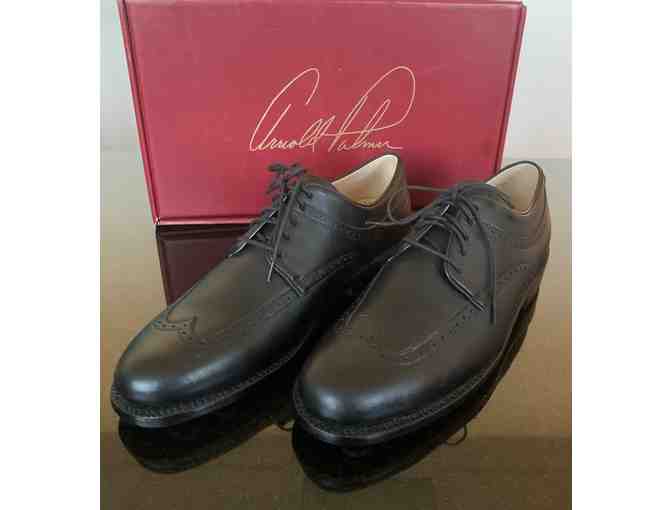 Dress up your step with these handcrafted, black wingtip Arnold Palmer golf shoes. Mens size 10 B (narrow).