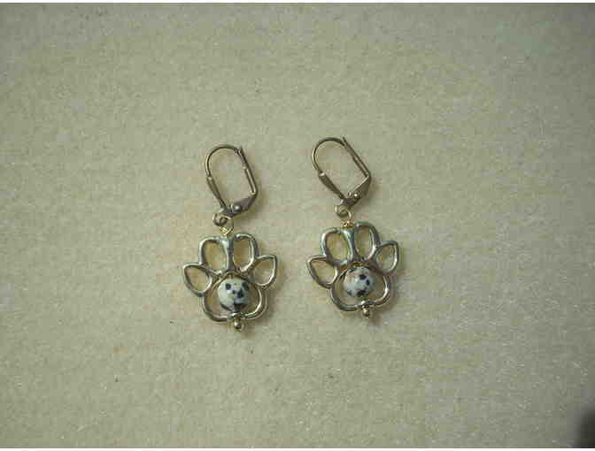 Dalmation Jasper with Gold Dog Paw earrings