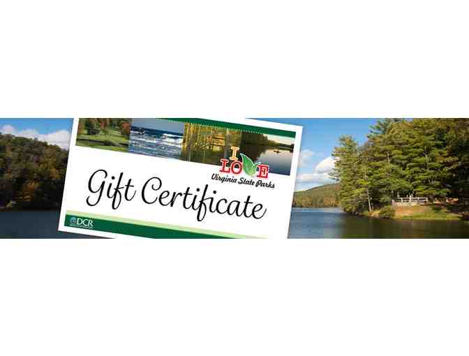 Virginia State Parks gift certificates make a great gift for the outdoors lover on your shopping list. Rent cabins, campsites or picnic shelters, or buy annual passes with a gift certificate. Use them through our Customer Service Center or online. There is no expiration date and you can always add additional funds on to an existing gift certificate.