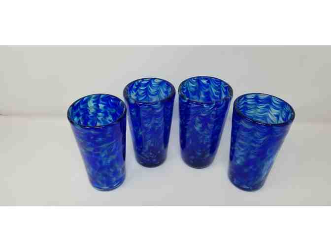 Hand blown, one at a time, 12 oz. beer glasses. (Beer not included.) These are sturdy glasses, they will survive a river trip.