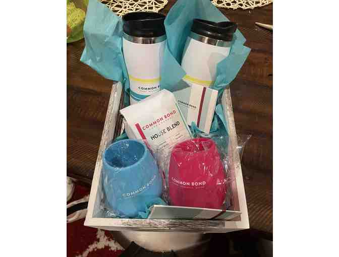 Check out local bakery and coffee shop Common Bond. This gift basket includes a 50.00 gift card as well as two insulated coffee mugs and a lb of their special blend coffee and two picnic wine glasses.