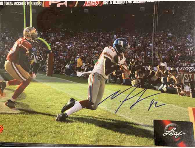 NY Giants WR Mario Manningham signed framed 16x20 photo. Manningham star receiver in the 2011 Giants Super Bowl run who made key catches to help the Giants on their run to Indy! Just a great item!