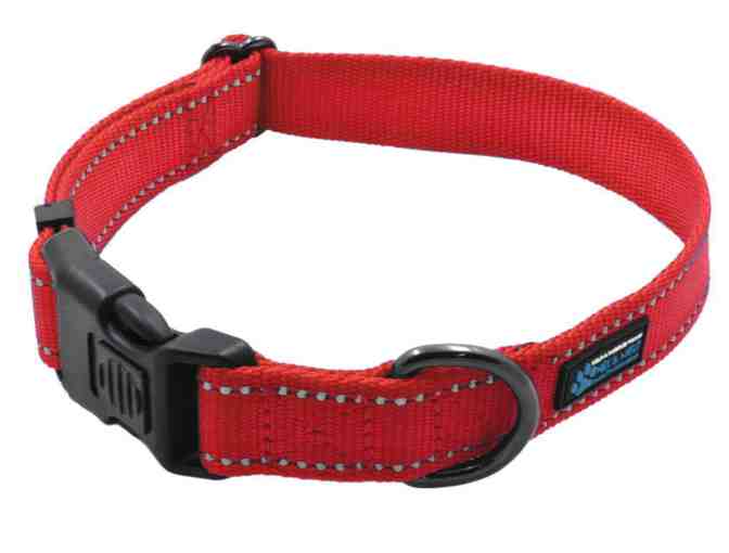 Our NEO Dog Collar is a heavy duty, reflective locking nylon clasp dog collar. The collars are 2mm thick and very strong and made for the largest of dogs. Its quality nylon webbing contains reflective stitching for improved nighttime visibility. It features a lockable nylon clasp which prevents an accidental releasing of the latch when grabbing the collar.