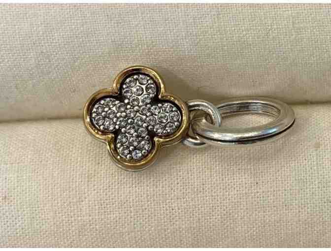 Brighton Lucky Clover Two Tone Dangle Charm w/Swarovski Crystals. Silver plated metal. Condition is new without tags.