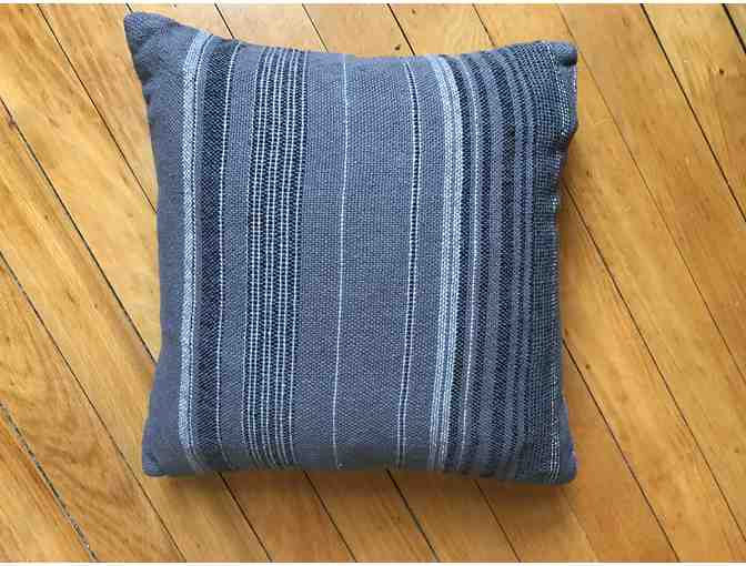 13"x13" handwoven by Lyn Shamban Cottolin (60% cotton, 40% linen) removable cover with zipper can be machine washed and dried.