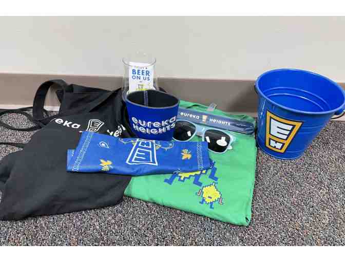 Gift basket from Eureka Heights includes: apron, t-shirt, glasses, gator, coozie, glass, and bucket and $50 giftcard!