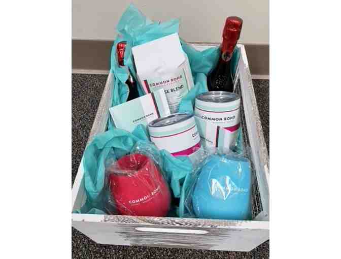 Basket includes 2 coozies, 2 wine tumblers, 2 JP Chenet Brut bottles, 12 oz houseblend whole bean coffee, and 2 gift cards for $25 each!
