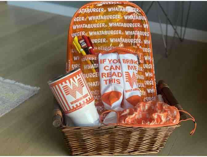 Basket includes Whataburger branded backpack, YETI tumbler, mask, socks, pens and $250 gift card to Whataburger.
