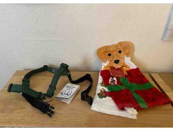 Sense-sation Sense-ible Harness, green Size Large (My baby is a medium/large) and two Christmas towels.