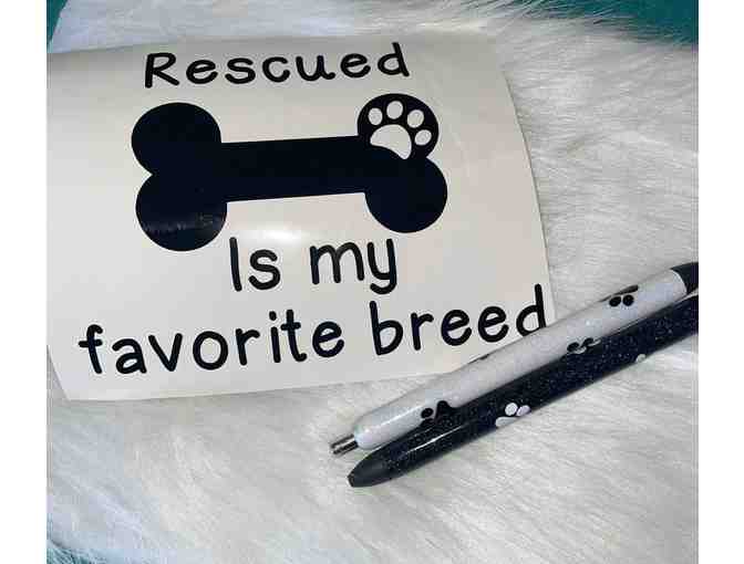 Show your love for your Rescues with this cute decal and customized pens! Pens are 0.7 mm refillable gel pens. They write very smooth, and are one of a kind!