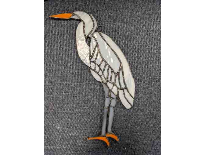 Charming set of four waterbirds: a duck, a pelican, a gull, and a heron, with metal hooks for hanging. Each piece is apprx. 6"-10" high.