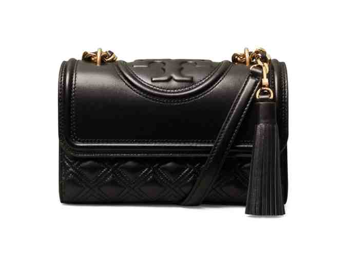 From the Fleming Collection. Diamond-quilted shoulder bag with an embossed logo design.