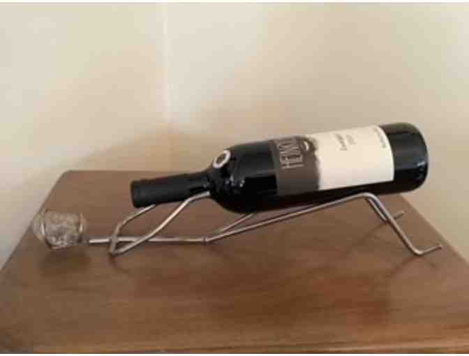 Wine Bottle Holder made from metal and natural stone. Hand Made