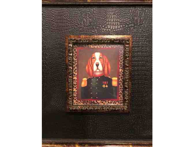 Three framed prints of regal but whimsical pups. Overall dimensions 15"x 14". Inner image is 5" x 7". A great way to decorate some wall space!