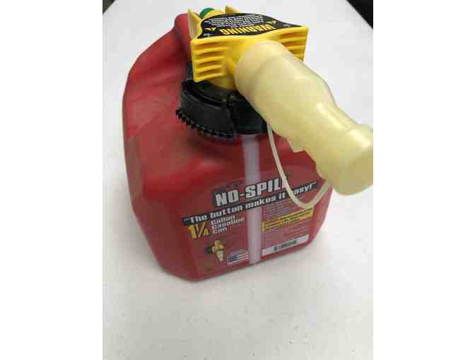 1 1/4 gallon gasoline can.  No spill.  Push button control stops flow automatically.  Faster flow.  3-year warranty.  Made in the USA.