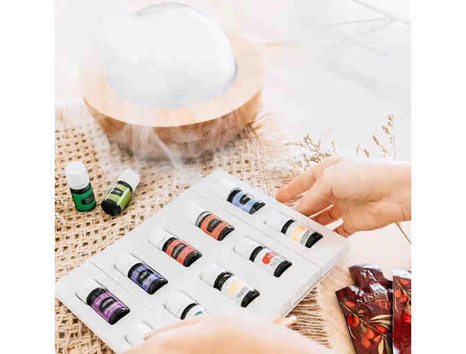 An essential oil starter bundle including 12 everyday oils, a copy of the DIY oil recipe book, and a free consultation.