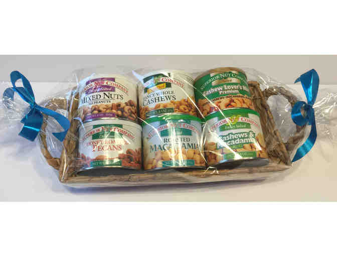 Spring Fever got you feeling squirrely? Get your hands on this lovely assorted nut gift basket! Featuring 6 canisters of "fancy" assorted nuts from Superior Nut Company, this basket has it all a great variety of nuts. These canisters a 7.5 ounces each. Presented in a quaint basket. The perfect gift for nut lovers... or for yourself!