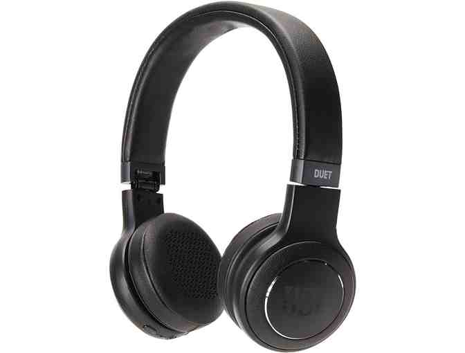 JBL duet BT on-ear wireless headphones bring you the signature sound of JBL in one of our most versatile packages ever. They feature up to 16 hours of battery life, The ability to seamlessly switch between devices, aluminum touches and Leather ear pads. Sound can be easily controlled by from the ear cups or by the 1-button universal remote with Microphone, when in wired mode.