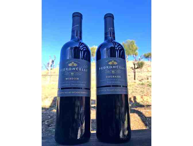 2017 Courage, Dry Creek Valley, Faloni Vineyard Zinfandel. Third-generation grower Dave Faloni’s family vineyard is a neighbor of Pedroncelli’s property and an expert in producing prime Zinfandel grapes. The wine is dark ruby in the glass, full-bodied with lush red berry, vanilla, deep spice and bramble flavors and a long, delicate smoky finish.