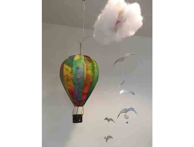 Let your fancies fly with this whimsical hot air balloon mobile, collaged with the work of our Junior Kindergarten emerging artists. The patchwork design is reminiscent of the Victorian-era silk balloons exploring the heights of our world.