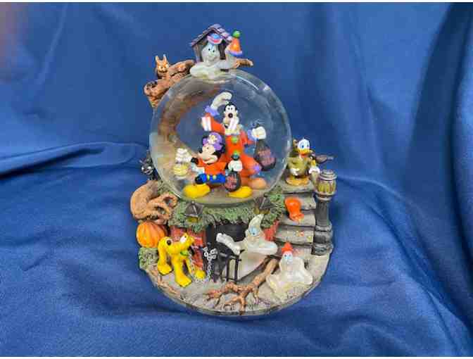 Characters: Donald Duck, Goofy, Mickey Mouse, Pluto, Features: pumpkin, birdhouse, street lights & gate lamp light up. Music: Halloween sounds. Circa: 2001