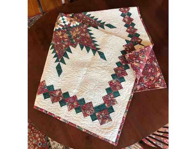 Handmade Quilt "Red and Green Feathered Star"