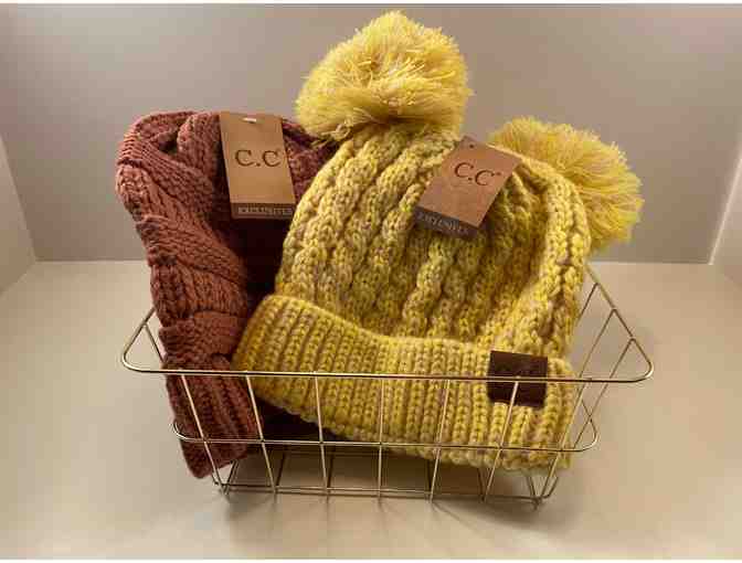 1 Adult lemon colored 2 pom-pom beanie.