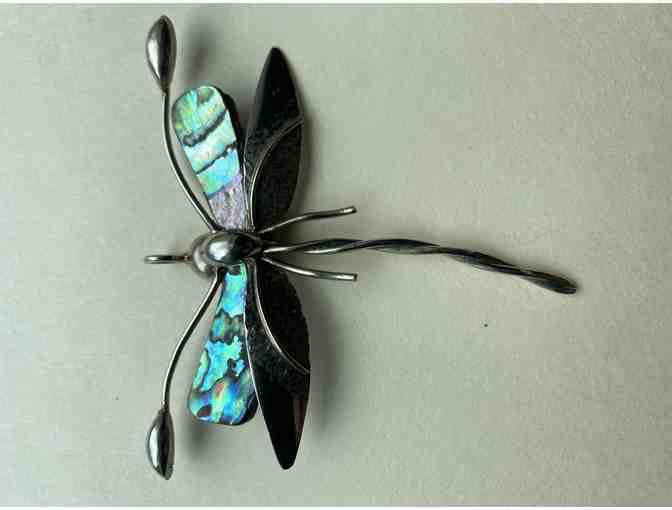 From a trip to cuba. Made using repurposed silver colonial flatware, and possibly additional metal that looks like silver but I'm not certain. Wings are abalone. 2.75ÂÂÂ x 2.5ÂÂÂ