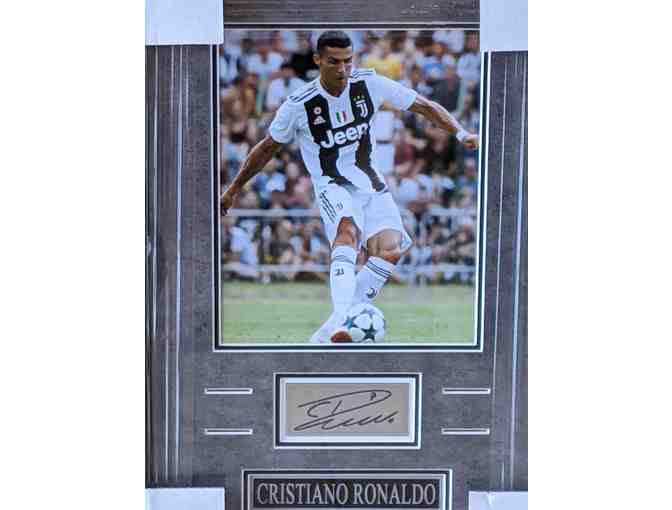 This is an 8x10 photo of Cristiano Ronaldo. Included is a laser signature. The piece comes custom mat and framed.