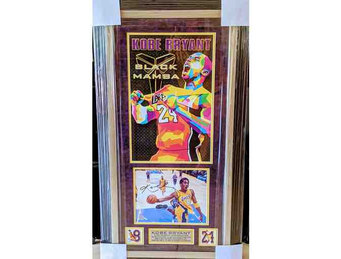 Mamba- This is an autographed 8x10 photo by Kobe Bryant. It has been forensically authenticated. Included is an unsigned photo. This must have piece comes custom mat and framed.