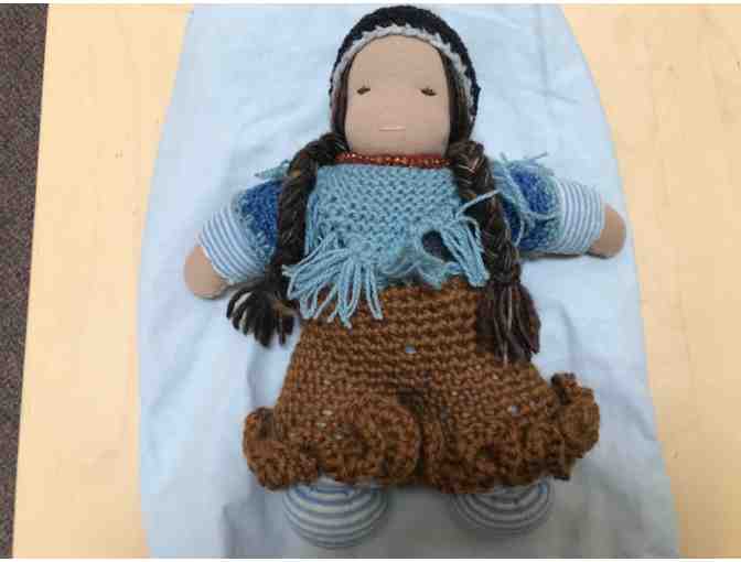 Being offered is a cuddly Waldorf doll handcrafted by SWSF parent, Rebecca Fenton. Upcycled materials and natural fibers were utilized as much as possible. Doll comes complete with an amber necklace and wool poncho. Contained inside is a rose quartz heart full of love for your little one!