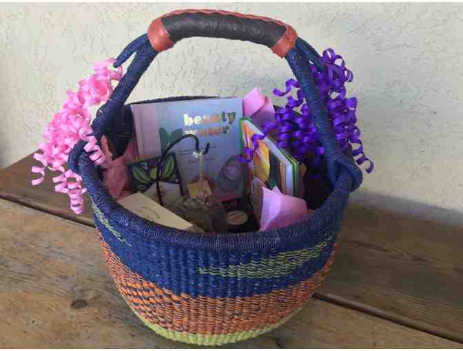 Goddess basket including a books, skincare, chocolate, tea and more! Treat the goddess in your life to this amazing gift basket.
