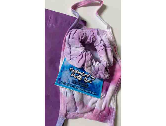 Ice-dyed face masks with a nose wire and hair scrunchie set made by Customized by Pretty Eyes.