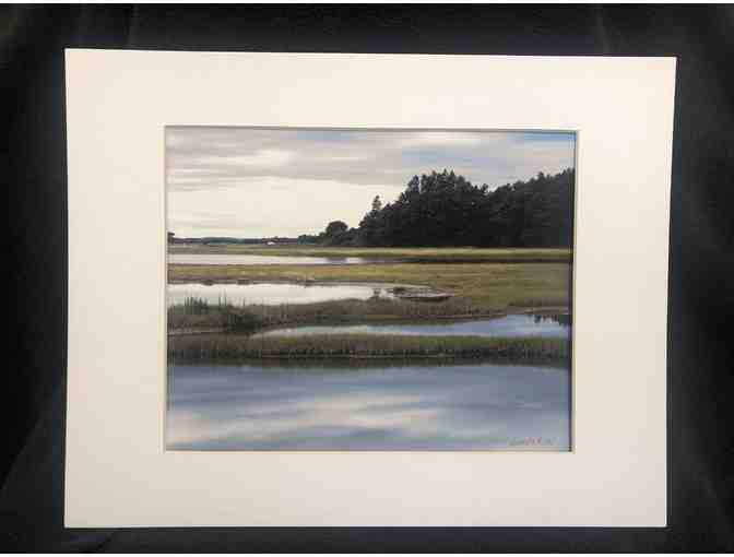 Photograph is matted with foam board backing. View from KLT Madelyn Marx Preserve across to Parson's Beach.