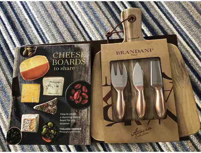 Cheese Board Book and Acacia Cutting board with Cheese Knife set