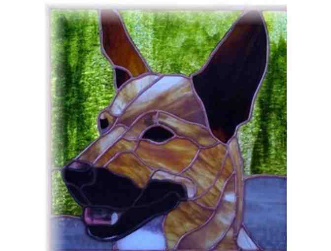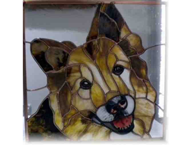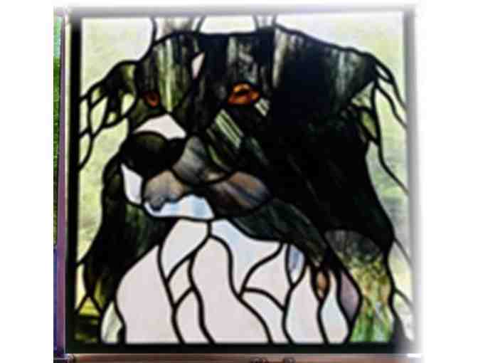 This item is for a custom designed 12 x 12 or 11 x 14 stained glass panel of your pet. The size will be determined as appropriate for the subject.