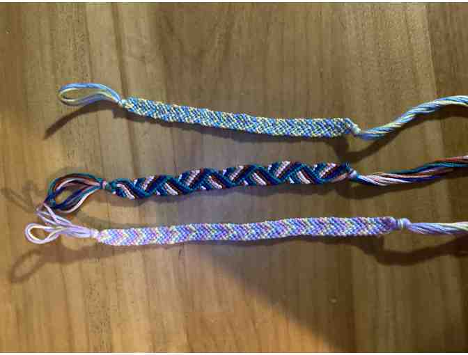 3 bracelets made from embroidery floss, about 27cm long (with extra string).