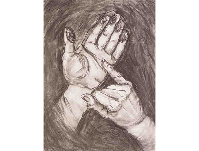 Faith Reagin is a junior BFA student at Mercer University in Macon, Georgia. She has loved drawing and painting all her life, and the Ashes to Art project inspired her to render one of her favorite subjects: hands. This piece depicts the ASL sign for the word "art," created with wildfire charcoal and shiny graphite.