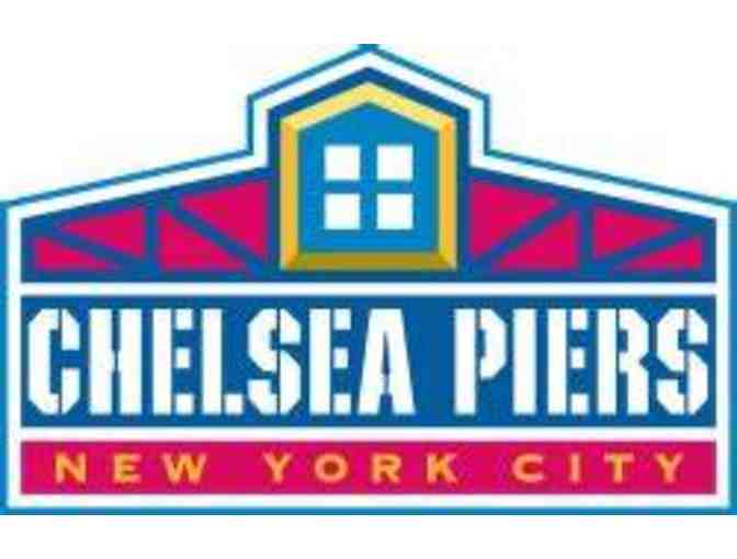 Guests must be 16 years or older. • $15 pre-paid Ball Card and club rental at the Golf Club, America’s first “Super Range.” • Admission and skate rental at Sky Rink, Manhattan’s only year-round, twin indoor ice skating rinks. • 5 batting cage tokens at the Field House (50 balls). • Free shoe rental with purchase of game at Bowlmor Chelsea Piers. Not valid Wednesday-Saturday after 5:00 pm. Not valid in December. • Admission for one child and an accompanying adult to the Field House’s Toddler Gym.