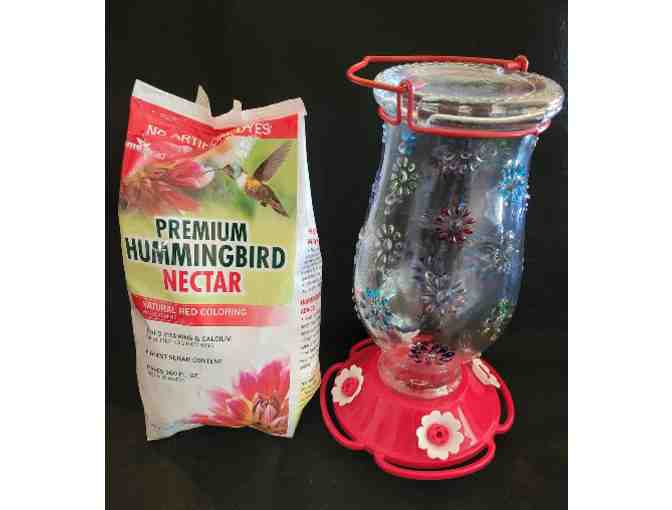 Humming birds never stop moving. We hope you never stop bidding on this basket. Included in this basket is a flowered humming bird feeder and humming bird necter power to host your own humming birds in your own garden.
